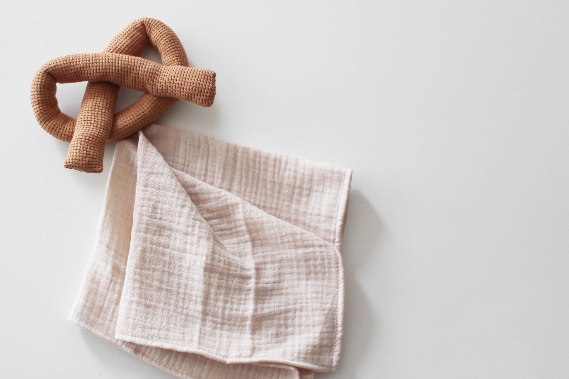 Confeccionado 100% en algodón orgánico certificado, suave y cuidadoso con la piel de tu bebé. Combina dos texturas suaves y reconfortantes: tejido waffle en su parte superior y muselina de algodón en la parte inferior.