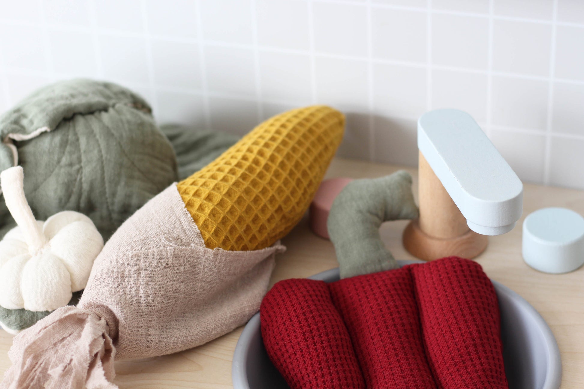 Juguete de bolsa de hortalizas de peluche.